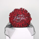 The luxurious bouquet of red flowers is one of the special love bouquets that convey your feelings to the other person. A beautifully arranged private bouquet that contains 100 red roses with a fragrant scent full of life, in addition to black tulle engraved with “I love you” and black ribbon that also gives the bouquet beauty, elegance and feeling.