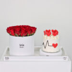 The set consists of a tray a flower box and a half kilo cake box Note: Preparing the cake takes two hours or more