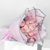 An elegant Jamelia bouquet consisting of 20 Jamelia roses, full of life and with a fragrant scent, with a solidago and a light pink wrapper with a beautiful arrangement behind it, in addition to a pink ribbon.