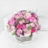 Fish Ball 13: With roses and baby roses in light and dark pink, fuchsia and purple, with an ami flower in addition to limanium and a little special orchid flower in a beautiful and wonderful arrangement.
