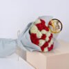 Bouquet of 20 red and white roses with a happy birthday stick and a gray wrapper