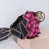 Bouquet of 20 deep purple roses with happy birthday stick and black wrapper