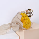 Bouquet of 20 yellow roses with a happy birthday stick and a beige wrapper