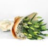 Soft lilies with gypsophila are beautifully and distinctively arranged with a brown paper cover and a rope to tie it in a beautiful and wonderful arrangement as a special gift for someone dear to your heart
