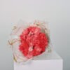 Red chrysanthemum bouquet beautifully arranged with a white wrapper striped in gold with a rope to tie