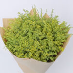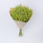 A simple bouquet of soft solidago flowers, beautifully arranged with a beige paper cover, as a gift for someone dear to your heart.
