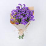 A simple bouquet of Statice purple flowers, beautifully arranged with a beige paper cover, as a gift for someone dear to your heart.