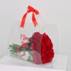 The transparent love bag from the special love collection, which contains 30 red roses inside the bag in a beautiful arrangement as if it were a bag full of love and tenderness, in addition to a red ribbon as if it were a lock to a bag containing the heart of your loved one to remain inside it along with the writing “I love you from the outside” to give a complete bag of love. Trust and feeling for the other person with a fragrant scent full of life.