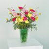 Flower vase 25 : from Baby Roses in pink with a soft carnation flower with a distinctive Matthiola flower, in addition to a beautiful lily flower with Solidago and Eucalyptus with a fragrant scent, in a beautiful and wonderful arrangement inside a cylinder filled with water.