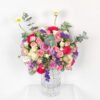 flower vase 59 : of roses and baby roses in white, light and dark pink, peach, fuchsia and purple with a Santini flower, a distinctive Gerbera flower, and Eucalyptus with a fragrant scent, in a beautiful and wonderful arrangement.